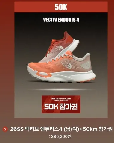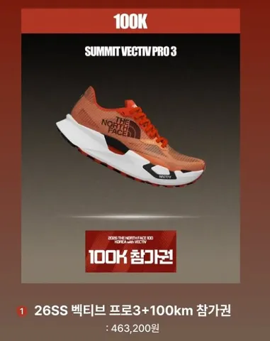 (벡티브 엔듀리스 4 신발 20% 할인 199,000원 → 159,200원 + TNF100 50K 사전 접수 참가비 20% 할인 170,000원 → 136,000원) - 100K 패키지 : 463,200원 (100개 한정 수량)