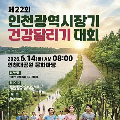 2026 인천광역시장기 건강달리기 대회 안내해 드리겠습니다. 2026년 제22회 인천광역시장기 건강달리기 대회 대회가 6월 14일 개최됩니다. 대회 신청, 대회 코스, 대회 기념품, 대회 일정, 기록 조회, 환불 등 자세히 알아보겠습니다.