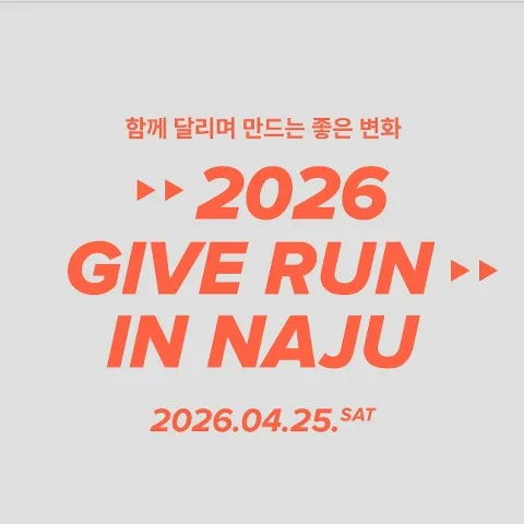 2026 나주 기브런 마라톤 대회 안내해 드리겠습니다. 2026년 GIVE RUN in 나주 대회가 4월 25일 개최됩니다. 대회 신청, 대회 코스, 대회 기념품, 대회 일정, 기록 조회, 환불 등 자세히 알아보겠습니다.