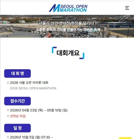 2026 서울오픈마라톤 대회 안내해 드리겠습니다. 2026년 서울오픈마라톤 대회가 10월 5일 개최됩니다. 대회 신청, 대회 코스, 대회 기념품, 대회 일정, 기록 조회, 환불등 이 대회에 대해서 알아보겠습니다.