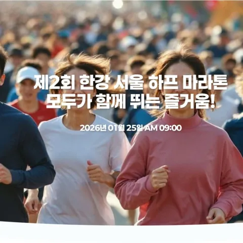 2026 한강서울하프마라톤 대회 안내해 드리겠습니다. 2026년 한강 서울 하프 마라톤대회가 1월 25일 개최됩니다. 대회 신청, 대회 코스, 대회 기념품, 대회 일정, 기록 조회, 환불등 이 대회에 대해서 알아보겠습니다.